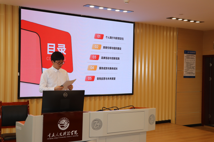 在最后一名同学的展示与答辩结束后,我院2025年重庆市高校三好学生和优秀学生干部的竞选圆满落幕,但青春的故事永远不会结束,作为新时代的新青年、争先进的大学生,我们见证国家繁荣昌盛,也肩负社会殷切期望。在往后的学习工作生活中、我院学子定当踔厉奋发,笃行不怠,以实际行动书写青春华章,为中华民族的伟大复兴中国梦贡献青春力量!