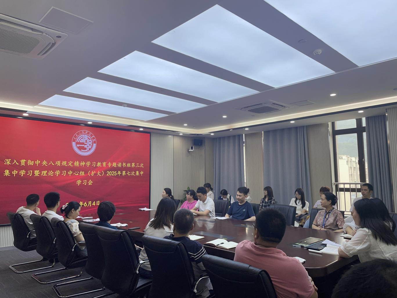6月4日,js333金沙线路检测在15302召开了深入贯彻中央八项规定精神学习教育专题读书班第三次集中学习暨理论学习中心组(扩大)2025年第七次集中学习会。会上,围绕《习近平关于加强党的作风建设论述摘编》第七章内容展开学习。学院党总支委员、党支部书记、教师党员代表参加会议。