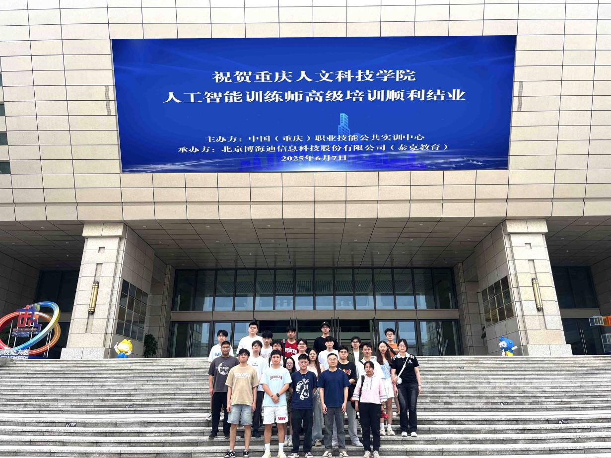 在数字化浪潮席卷职场的当下,为增强高校毕业生核心竞争力,重庆市职业技能公共实训中心主办、北京博海迪科技股份有限公司(泰克教育)承办的首届高级人工智能训练师(三级高级工种)培训班成功举办。来自js333金沙线路检测的 27 名应届毕业生,历经系统学习,于 6 月 7 日在重庆市职业技能公共实训中心参加统一考试,冲刺这一高含金量的职业技能等级证书。