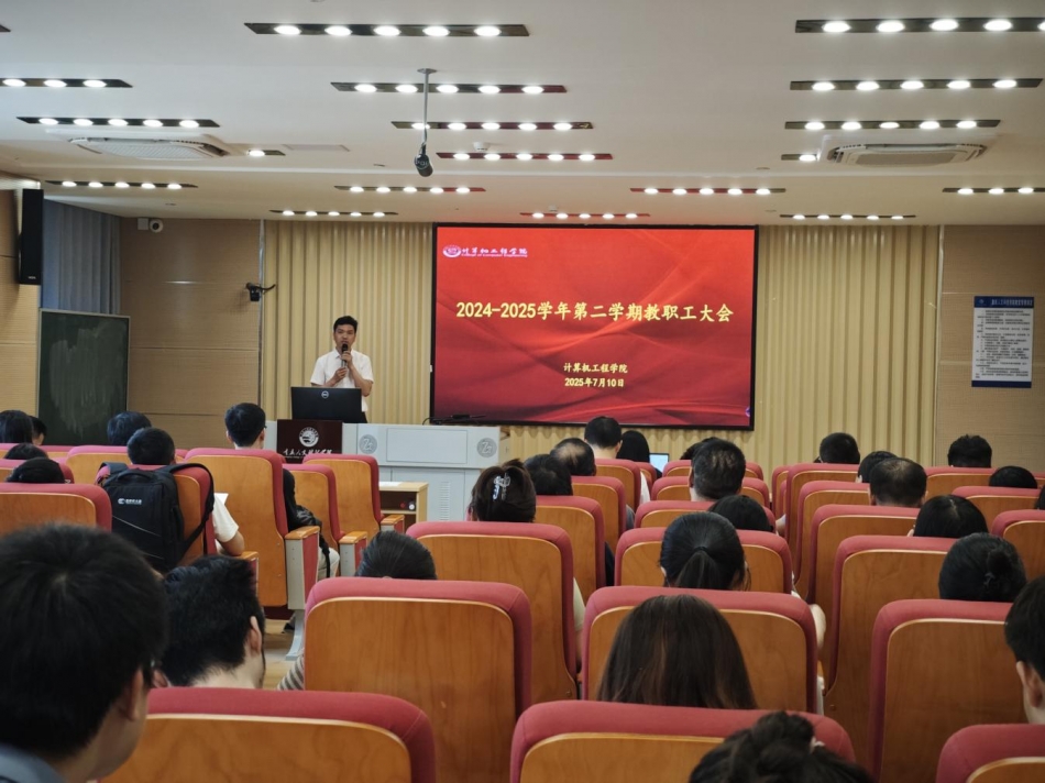 7月10日,js333金沙线路检测在151302召开2025年第6次教职工大会暨教职工政治理论学习会。会议由学院院长助理张俊主持。